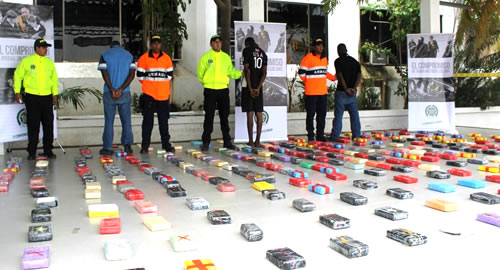 Un gran hallazgo de alcaloide fue el resultado luego de que uniformados de la Seccional de Investigación Criminal fueran informados por personal de Guardacostas de la Armada Nacional, que en Puerto Bolívar, jurisdicción del municipio de Uribía, se encontraban unos polizones dentro de un barco de bandera de Malta, procedente de Holanda con destino a España. Esto condujo a la inmediata diligencia de inspección del lugar mediante buceo por parte del personal de guardacostas, logrando detectar ocho tulas de color negro, las cuales contenían en su interior 323 envoltorios con sustancia pulverulenta la cual sometida por los expertos a prueba de PIPH arrojó preliminarmente positivo para cocaína y sus derivados.Así, la Policía procedió a realizar el desembarque de la misma, la materialización y lectura de los derechos del capturado y la puesta a disposición junto con el narcótico ante la autoridad competente.Fue informado que uno de los capturados presentaba un alto estado de deshidratación por las altas temperaturas en esta zona geográfica del país y tuvo que recibir primeros auxilios por parte del personal médico de Puerto Bolívar.Ahora se enfilan todas las estrategias en establecer a que organización delincuencial o criminal pertenece el cargamento alucinógeno; el cual fue estimado por un valor de más de mil 600 millones de pesos.
