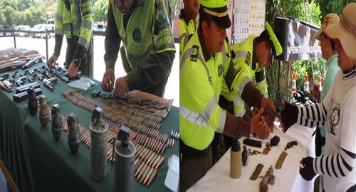 La estrategia de acercamiento con la comunidad denominada 'Plan desarme + vidas - armas', fue liderada por personal de la Policía Nacional con la Seccional de Tránsito y Transporte (SETRA) en los municipios de El Zulia, Los Patios, Puerto Santander y Villa del Rosario, para llevarles a sus habitantes así como a los usuarios de las vías, una alternativa para apoyar la cultura de la legalidad y fortalecimiento de la seguridad. En puestos de recepción ubicados en el Peaje Los Acacios del municipio de Los Patios y el sitio Agua Zulia en la vía que comunica con la Costa Atlántica, una a una fueron llegando las armas de fuego y el material bélico que permanecían en poder de la comunidad, sin contar con los permisos establecidos. Durante la campaña que hace parte de la estrategia institucional, fueron entregadas voluntariamente 50 armas de fuego de largo y corto alcance, 695 cartuchos de diferentes calibres, tres cargadores para armas cortas y largas, cuatro granadas de fragmentación de mano, tres granadas de humo y una granada de perdigones. Dentro de las armas de fuego incautadas hay treinta escopetas artesanales de diferentes calibres, una escopeta de fabricación industrial, 16 armas hechizas tipo trabuco y tres pistolas de fabricación industrial, además de la munición que serviría como suministro para al menos quinientas armas. En las cuatro jornadas de contacto ciudadano, los uniformados le dieron la bienvenida a hombres y mujeres de todas las edades, quienes convirtieron las bolsas plásticas, costales, papel cartón y cinta adhesiva, como escudos guardianes de aquellos elementos que en determinado caso pueden convertirse en una amenaza para la integridad personal y seguridad de la sociedad. En esta oportunidad cerca de un centenar de personas, especialmente residentes en la zona rural apoyaron la propuesta que buscaba despertar en la ciudadanía un concepto de cooperación a través de la entrega de armamento a cambio de productos alimenticios, cascos y chalecos para el uso de los motorizados. Uno de los casos destacados fue el de una mujer de aproximadamente ochenta años de edad, quien sorprendió con su llegada llevando en su poder una granada de fragmentación de mano en mal estado de conservación, la cual mantuvo en su poder por algunos meses luego de encontrársela abandonada en una finca del municipio de El Zulia, convirtiéndose en una grave amenaza para su integridad y la de su familia. Los participantes y donantes de estos elementos de uso y porte restringido, llevaron para sus casas cincuenta mercados que contenían diferentes productos de la canasta familia, 25 cascos y diez chalecos reflectivos, elementos que simbolizan la gratitud de la sociedad ante un acto de apoyo a la no violencia. Con esta campaña de cooperación ciudadana se contribuye a garantizar mejores espacios de desarrollo social para los habitantes de la zona de frontera, fomentando la cultura del respeto por la vida y al tiempo disminuir los casos de violencia y accidentes que conlleven a la comisión de homicidios y lesiones personales, donde en muchos de los casos las víctimas son menores de edad.