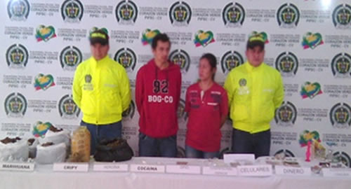 Bajo la coordinación de la Fiscalía General de la Nación de Ibagué, se da captura en flagrancia a alias Mario y alias Rosa en un inmueble, hallándoles en su poder 7.490.000 dosis de Marihuana y Cripy con un peso aproximado a los 7490.1 gramos; también se encontró en la vivienda heroína, cocaína, opio celulares para su comunicación y distribución, grameras y elementos para el consumo masivo, estos ascienden a los $1.345.000 millones de pesos aproximadamente.Al parecer los indiciados serían los encargados de ingresar estas sustancias alucinógenas al interior de la universidad del Tolima, aprovechando que alias Rosa tenía acceso al interior de la universidad por ser estudiante de biología y topográfia.Es de anotar que estas personas utilizaban el inmueble para el consumo de los estupefacientes de los estudiantes, facilitándole elementos de consumo tales como pipas, papel para el empaque y posterior consumo de estos.En audiencia preliminares se les dictó medida de aseguramiento intramural donde los indiciados fueron enviados al centro penitenciario y carcelario COIBA por el delito de fabricación y tráfico de estupefacientes.La Policía Nacional sigue brindando a la comunidad resultados efectivos en la lucha frontal contra el consumo y expendio de sustancias alucinógenas en los entornos educativos.