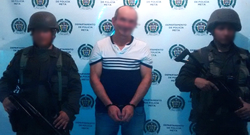 La Policía en vía pública del casco urbano de la Inspección Piñalito, jurisdicción del municipio de Vista Hermosa, capturó a un presunto integrante de la red de apoyo al terrorismo de los frentes 42 y 27 del bloque oriental de las Farc.Gracias a las labores de vigilancia y seguimiento adelantadas, el indiciado, fue notificado de la orden de captura expedida en su contra por el delito de rebelión.Al parecer este sujeto se encargaba del transporte de alimentos y armamento a las zonas campamentarías de dichas estructuras que se financian a través de la extorsión y del narcotráfico en el Departamento.