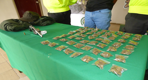 Este resultado contra el microtrafico se registró gracias a una diligencia de registro y allanamiento realizada por uniformados de la estación de Policía Rivera y la Unidad Básica de Investigación Criminal (UBI) quienes interceptaron a este hombre quien de manera sospechosa trató de evadir el control policial.En el hecho le fueron halladas 56 dosis de marihuana, un arma de fuego y un uniforme de uso privativo de las fuerzas militares.El capturado junto con los elementos fue dejado a disposición de la autoridad competente.