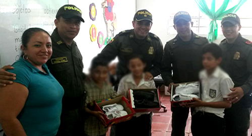 Luego de observar que estos niños asistían a clases con zapatos de plástico, los Policías en el municipio de Vista Hermosa se comprometieron de corazón a brindarles mejores condiciones de bienestar.Es así como los uniformados en coordinación con los directivos del plantel estudiantil, recolectaron dinero para comprar los nuevos zapatos que fueron entregados a los infantes durante la jornada educativa. Cuando los uniformados arribaron al salón de clases de estos pequeños, los aplausos fueron la muestra de que los nobles siempre serán vistos como héroes. A partir de hoy, estos angelitos seguirán motivados a hacer una de las cosas que más les gusta, asistir a la escuela y estudiar para cumplir sus sueños y apoyar a sus padres.