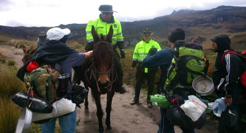 Nuestros uniformados del Grupo de Protección Ambiental y Ecológica vienen realizando en el Parque Nacional Natural los Nevados, una serie de actividades de concientización mediante visitas y charlas de sensibilización a los turistas que visitan este parque. Con el inicio de la temporada vacacional, la actividad de turismo ecológico se incrementó en el sector del eje cafetero razón por la cual nuestros uniformados adscritos a este grupo vienen desplegando una serie de controles para el correcto uso y funcionamiento del Parque Nacional Natural los Nevados.Nuestros uniformados mediante un control de protección al medio ambiente realizaron registros e identificación de las personas que se dirigían hacia el Parque Natural, de igual forma realizaron charlas de sensibilización y conservación dando a conocer las prohibiciones en esta temporada vacacional la cual se enfatiza en no realizar ningún acto que atente con alterar las condiciones del lugar así como la prohibición de realizar quemas o fogatas.De igual forma en asocio con funcionarios del parque, se realiza visitas al sector de la laguna del Otún y el morro el mosquito, con el fin de prevenir que los visitantes y turistas extraigan fauna y flora silvestre del lugar.En el sector de la asomadera y los chorros, se verifica que los visitantes no realicen pesca ya que este sector es de gran importancia ecológica y es uno de los puntos más vulnerables por tener recursos hidrobiológicos y poseer una de las reservas de agua dulce más importantes de la región, es de anotar que los respectivos patrullajes de control también se realizan en horas nocturnas. La comunidad del sector demuestra a nuestros uniformados su gratitud por el servicio prestado, logrando así una percepción de seguridad en la zona, entre la comunidad y los visitantes.
