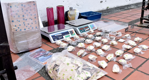 Las acciones Policiales se desarrollaron mediante la ejecución de tres órdenes de registro y allanamiento simultáneos en la vereda el Jordán de esta localidad, donde se logró la incautación de dos máquinas industriales para el empaque de sustancias estupefacientes "papeletas de bazuco", tres mil setecientas dosis de bazuco listas para ser distribuidas, dos basculas, siete paquetes de papel adhesivo con figuras geométricas y demás elementos utilizados para el procesamiento.Este resultado afecta considerablemente el accionar delictivo y las finanzas de la organización delincuencial denominada "Cordillera", dedicada al tráfico de narcóticos; con la incautación de estas máquinas y el estupefaciente se saca de circulación el más grande de los centros de acopio y distribución de bazuco, el cual se comercializa mediante la modalidad de expendio callejero en varios sectores de la ciudad de Pereira, logrando con ello que las dosis caigan en manos de los consumidores, generando así una mejor percepción de seguridad ciudadana a los habitantes de esta jurisdicción.El principal fenómeno de afectación a la seguridad ciudadana, se deriva del tráfico local de estupefacientes; actividad delictiva que se encuentra monopolizada por la red delincuencial enunciada anteriormente, siendo la estructura que posee el monopolio de la comercialización frente al mercado interno que se presenta en los municipios de Pereira, Dosquebradas y la Virginia.Las maquinas incautadas tienen una capacidad de sellar treinta mil papeletas diarias de bazuco, dejando ganancias diarias de sesenta millones de pesos los cuales financiaban la organización, estas maquinas venían siendo utilizadas desde sus inicios como organización delincuencial denominada Cordillera desde el año 2006.Continuaremos ejecutando planes operativos que garanticen la seguridad de todos los Pereiranos, invitando a la comunidad a trabajar mancomunadamente en la construcción de sociedades pacíficas y en paz.