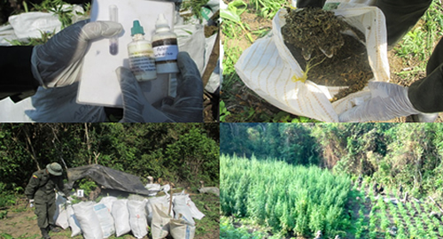 La Dirección de Antinarcóticos, llevó a cabo una operación de interdicción en la vereda La Mojana jurisdicción del municipio del corregimiento Santa Rosalía, Zona Bananera del departamento del Magdalena, durante la cual se logró la incautación de 1.2 toneladas de marihuana 1.258 kilos avaluadas aproximadamente en $100.640.000.El desarrollo del operativo que dio como resultado la incautación del alcaloide, se realizó mediante labores de inteligencia por parte de integrantes de la Policía Antinarcóticos, para lo cual se desplegó un acertado dispositivo, que condujo al desplazamiento hasta el lugar de ubicación del centro de acopio.Al llegar al sitio, se encontró una sustancia vegetal almacenado en treinta y siete (37) sacos con características semejantes a la marihuana, la cual luego de practicarle la Prueba de Identificación Preliminar Homologada PIPH por parte del personal de la Unidad de Investigación Criminal Antinarcóticos de Santa Marta, arrojó resultado positivo para cannabis.De igual forma en este sitio se desarrolló la erradicación manual de un cultivo con 2500 plantas de marihuana aproximadamente.Con la incautación del alcaloide, la destrucción del centro de acopio y la erradicación manual del cultivo, se afectan directamente las finanzas y estructuras de las bandas criminales que operan en esta zona costera del país; así mismo, con el resultado de las investigaciones se puede establecer el modus operandi y la ubicación geográfica del desarrollo de algunas de las actividades ilícitas de los narcotraficantes, lo que servirá como antecedente para posteriores labores operativas que adelanten las unidades de la Policía Nacional.A la fecha la Policía Nacional se ha incautado de 57 toneladas de marihuana a lo largo y ancho del territorio colombiano.Entre tanto la ciudadanía tiene a su disposición la línea nacional 167 de la Policía de Antinarcóticos la cual está disponible las 24 horas los 365 días del año para aquellos ciudadanos que suministren información la cual conduzca a la ubicación de laboratorios, insumos químicos, integrantes de organizaciones criminales, armas y explosivos.Se garantiza absoluta reserva y el pago de recompensas.