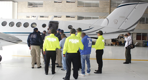 La Oficina Central Nacional Interpol Colombia, como iniciativa para neutralizar las capacidades de la delincuencia trasnacional y en cumplimiento a tratados de cooperación, extraditó a Estados Unidos a 12 ciudadanos colombianos entre los que se encuentran cabecillas de estructuras criminales como el 'clan Úsuga' y 'los comba'.Alias 'Óscar'Solicitado por la Corte Distrital de los Estados Unidos de América para el Distrito Este de Nueva York, por el delito de narcotráfico.Fue capturado por la Dijin el 3 de abril de 2015 en Cartagena (Bolívar), lideraba una organización criminal que controlaba las rutas para el transporte de sustancias estupefacientes hasta puntos de acopio en la frontera con Venezuela, desde allí eran llevados a puertos marítimos para su transporte en embarcaciones hacia Centro América, México y Estados Unidos.También habría pactado alianzas con el cartel de Sinaloa para el comercio de sustancias estupefacientes.El `Príncipe'Fue capturado por funcionarios de la Dirección de Investigación Criminal Interpol -Dijin– el 19 de octubre de 2014 en la ciudad de Bogotá. Está solicitado por la Corte Distrital de Nueva York por el delito de narcotráfico.El `Príncipe' se encargaba de la producción, transporte y distribución de cargamentos de estupefacientes de la banda narcotraficante 'clan Úsuga' en el sur del país y el caribe colombiano; rendía cuentas a uno de los cabecillas de esta estructura conocido como 'Nicolás'.El 'Turco'Hacía parte de una red criminal asociada con la organización de 'los comba' para el envío de estupefacientes desde Colombia hacia Centro América por vía aérea y marítima, para ello contaban con la infraestructura logística que les permitía la producción, comercialización y transporte, así como enlaces internacionales para el ingreso de los alcaloides al mercado norteamericano. Sus principales clientes eran carteles mexicanos y sus rutas se ubicaban sobre el pacífico colombiano y el departamento del Vichada donde utilizaban pistas clandestinas. Los laboratorios para la producción de alcaloide se encontraban en el departamento del Cauca.Fue capturado por funcionarios de la Dijin el 25 de mayo de 2015 en Medellín (Antioquia) y está solicitado por la Corte Distrital de Texas, por el delito de narcotráfico.Alias 'Ana'Esta mujer fue capturada por la Policía Nacional el 20 de mayo de 2015 en la ciudad de Medellín (Antioquia); integró una organización delincuencial dedicada al tráfico de estupefacientes hacia los Estados Unidos cuyos cargamentos eran camuflados en objetos como cofres fúnebres, guitarras, sombreros, comestibles, artesanías, entre otros. También lo hacían mediante el empleo de correos humanos quienes adherían el alcaloide al cuerpo de las personas para evadir los controles de las autoridades.Responderá ante la corte Sur de La Florida por narcotráfico y concierto para delinquir.'El Viejo'Fue capturado por funcionarios de la Dijin el 19 de junio de 2015 en Cali (Valle del Cauca). El 'Viejo' era el cabecilla de una organización delictiva dedicada a la fabricación y falsificación de divisas las cuales ingresaban al mercado estadounidense empleando correos humanos, allí otro integrante de la organización se encargaba de poner en circulación la moneda falsa.Será presentado ante la Corte para el Distrito Sur de La Florida por el delito de tráfico de moneda falsificada.Finalmente siete personas más solicitadas por cortes del Distrito Medio de Florida, Corte Distrital de Nueva York y Texas.