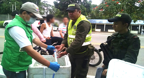 Con el propósito de contribuir a garantizar la salubridad de la comunidad, la Policía en coordinación con las autoridades territoriales de cada municipalidad, viene liderando una serie de controles orientados a verificar el transporte de alimentos perecederos sobre los ejes viales del Departamento.Es así como en la vía que conduce hacía el municipio de Puerto López, uniformados se incautaron de 40 kilos de pescado que no tenían el tallaje mínimo exigido, infringiéndose la Resolución 2086 de 1981, que hace referencia a las tallas mínimas de los peces de consumo, artes y métodos pesqueros. Estos peces transportados en una camioneta y avaluados en aproximadamente 400 mil pesos, quedaron a disposición de la autoridad nacional acuicultura y pesca "Aunap".