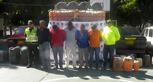 Un duro golpe recibieron los contrabandistas de combustible ilegal, al ser capturadas cinco personas que se movilizaban en un camión y tres vehículos, hechos que se registraron entre Rio Seco y Valledupar como resultado de los constantes operativos diseñados en el marco de la estrategia contra el contrabando.Estas personas transportaban 2 mil galones de combustible tipo gasolina de procedencia extranjera. Así mismo fueron interceptados otros dos sujetos quienes pretendían comercializar 35 galones de combustible ilegal.Simultáneamente fueron hallados 30 galones de gasolina abandonados en un automotor al notar la presencia de los uniformados. Es de anotar que a los vehículos inmovilizados le fueron modificados sus tanques originales para aumentar la capacidad de combustible cuya finalidad es la de realizar viaje con gasolina de procedencia extranjera.