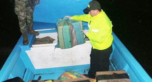 Nuestra Dirección de Investigación Criminal e INTERPOL a través del Grupo Investigativo de Hidrocarburos logró la incautación de 639 kilos de cocaína en el municipio de Tumaco, Nariño, el alijo tenía como destino final países de Centroamérica.De acuerdo con la investigación se estableció que el cargamento de cocaína zarpó desde el sector de candelillas, Nariño y sería propiedad de alias el Gordo integrante de la 'Columna Móvil Daniel Aldana' encargado de supervisar el envío de grandes cantidades de cocaína a diferentes países.En coordinación con la Armada Nacional, funcionarios de la DIJIN interceptaron una lancha tipo 'go fast' en la desembocadura del rio Mira en el Océano Pacífico, encontrando en su interior 639 kilos de clorhidrato de cocaína.En el momento que los tripulantes de la nave notaron la presencia de las autoridades, emprendieron la huida hacia los esteros que rodean el sitio donde se halló la lancha con la droga.