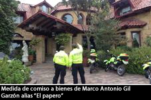 Bogotá D.C. La Fiscalía General de la Nación, en coordinación con la Policía Nacional, ocupó con fines de comiso 19 bienes de propiedad de Marco Antonio Gil Garzón, alias ¿el papero¿ capturado por la DIJIN en Bogotá el pasado 16 de marzo. Las propiedades, ubicadas en Bogotá, y en los municipios de Cajicá y Chía, Cundinamarca, están representadas en casas, lotes, parqueaderos, vehículos, oficinas, depósitos, sociedades y dólares en efectivo, avaluados en la suma de 124 millones 475 mil dólares. El comiso de los bienes de Gil Garzón es una medida cautelar que se ordenó dentro del proceso penal por el cual tiene medida de aseguramiento y su fin es congelar todas las propiedades, cuentas bancarias y acciones que figuren a su nombre, para evitar cualquier transacción jurídica, hasta tanto la justicia no determine si condena o no a Gil Garzón. El fin del comiso es para la reparación de víctimas o en su defecto para el fondo de la Fiscalía General de la Nación y en este caso quedan bajo la custodia de la Fiscalía General de la Nación. Al momento de su captura Gil Garzón aparentaba ser un próspero comerciante, actividad que le permitió la adquisición de bienes en especial bodegas ubicadas en la principal central de productos agrícolas de la capital del país, así como la conformación de empresas de diversa índole. Marco Antonio Gil Garzón alias ¿Marco Gil, El Papero o el Mayor¿ está vinculado con el tráfico de drogas de Colombia a los Estados Unidos y figura en la lista Clinton desde el año 2007 como socio del narcotraficante Fabio Enrique Ochoa Vasco, quien en septiembre de 2009 se declaró culpable en los Estados Unidos bajo cargos de narcotráfico y declaró que varias empresas de Marco Antonio Gil Garzón formaron parte de la red financiera relacionada con su organización. Según la investigación Gil Garzón ha estado involucrado en actividades del narcotráfico en Colombia desde principios de los años ochenta con varios narcotraficantes reconocidos en Colombia y en México como son Miguel Arroyave y Edgar Guillermo Vallejo Guarín alias ¿Beto Gitano¿, capturado en España en septiembre de 2008 y extraditado hacia los Estados Unidos en el 2010 como socio criminal en grandes cargamentos de cocaína enviados a México y los Estados Unidos; este último, el 30 de junio fue sentenciado a 22 años de prisión por un Juez federal de Miami.