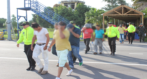 En operación conjunta realizada por personal policial adscritos a los departamentos del Meta y Casanare, mediante labores investigativas y de inteligencia se logró en el municipio de maní, la captura de 9 hombres y una mujer de 39 años de edad, integrantes de una banda criminal conocida como "Los Soto".Estos resultados se obtienen, luego de que en el mes de enero del presente año, campesinos y compañías generadoras de empleo del municipio de Maní (Casanare), pusieran en conocimiento de la Defensoría del Pueblo, que hacía seis meses atrás en este sector se inició la organización de una banda paramilitar criminal, bajo el seudónimo de los Soto, que traduce "sembrando orden total", liderada al parecer por alias "Vicente Soto", y quien según lo informado tendría bajo su mando 65 integrantes y se dedican al Narcotráfico, Porte Ilegal de Armas de Uso Privativo de las Fuerzas Militares, Desplazamiento Forzado, Homicidio, Extorsiones, y Reclutamiento Ilegal de Menores de Edad. Una vez se tiene conocimiento de los hechos, las unidades investigativas especializadas contra Bandas Criminales de la Seccional de Investigación Criminal Casanare, bajo la dirección de la Fiscalía asignada Especializada Contra el Crimen Organizado de Villavicencio, se realizan una serie de actuaciones judiciales como, declaraciones juradas a testigos, entrevistas, incautaciones de armas de fuego y municiones, interceptaciones de comunicaciones telefónicas, inspecciones judiciales a investigaciones relacionadas con los delitos cometidos por esta organización, identificación e individualización de los integrantes de esta organización criminal, análisis técnicos y científicos de los EMP o EF recolectados en la investigación, reconocimientos fotográficos, búsquedas selectivas en base de datos y análisis link, logrando con estas evidencias, emitir por parte de un Juzgado Penal Municipal con Función de Garantías de Bogotá, las ordenes de captura el día 27 de agosto del presente año, las cuales se hicieron efectivas el día 30 de septiembre. Dentro de los hechos que se le atribuyen a esta organización criminal, los Homicidios de dos hombres de profesión carniceros, y la tentativa de Homicidio de dos consumidores de estupefacientes. Los capturados fueron puestos a disposición de las autoridades competentes por los delitos de Concierto para Delinquir, Homicidio Agravado y Tráfico, Fabricación o Porte de Armas o Municiones.