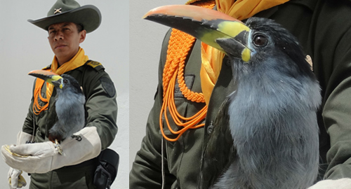 El Grupo de Carabineros y Guías Caninos del Departamento de Policía Nariño en su compromiso institucional para ejercer control al tráfico ilegal de flora y fauna, logra rescatar una especie que se encuentra en vía de extinción. Gracias a los planes operativos y las campañas realizadas los hombres y mujeres policías de esta especialidad, logran incautar un ave comúnmente conocida como Tucán pechigris, de nombre científico (indígena hypoglauca), que se encontraba en cautiverio y fue entregado voluntariamente por un ciudadano.La especie cuenta con un valor ecológico de siete salarios mínimos mensuales vigentes. El ave fue dejada a disposición de la Corporación Autónoma de Nariño Seccional Pasto para que fuera liberada en su hábitat natural. Se reitera a la comunidad nariñense que el tráfico o tenencia de animales silvestres y en vía de extinción es un delito que está contemplado en el artículo 328 del Código Penal Colombiano, el cual habla del ilícito aprovechamiento de los recursos naturales.