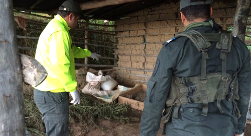 ​​​​Abrego, Norte de Santander. En la vereda Montenegro se encontraba sembrado el cultivo, igualmente se halló un centro de acopio y procesamiento para la misma.