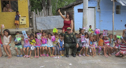 Con el inicio de las novenas navideñas se llevó a cabo la entrega de regalos en algunos barrios para más de 200 niños y niñas de bajos recursos.La Policía Nacional viene trabajando de la mano con la población infantil, inculcando, fomentando y rescatando valores muy importantes como son la tolerancia, el respeto la cultura y el amor por la familia.La institución quiere que los niños y niñas pasen una Feliz Navidad y tengan un juguete para disfrutar en estas festividades decembrina y hacerlos protagonistas en estas actividades, por esta razón le hace una invitación a la comunidad para que en esta época de Navidad comparta un abrazo, una sonrisa, una cena o un regalo con todos los niños de bajos recursos de Girardot y la Región.