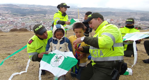 Como símbolo de integración y convivencia ciudadana en el marco de la Estrategia Institucional de Protección Integral a la Infancia y la Adolescencia, uniformados del grupo del Área de Prevención y Educación Ciudadana y del Modelo Nacional de Vigilancia Comunitaria por Cuadrantes de la Policía Metropolitana de Tunja, realizaron la campaña "Deja volar tus sueños", con el fin de generar espacios en que la niñez y la adolescencia hagan uso adecuado del tiempo libre, se ejerciten y se diviertan teniendo como premisa su felicidad y la protección al ambiente.Durante la actividad se vincularon a más de 50 niños, niñas y adolescentes de los barrios San Lázaro, el Carmen y Kennedy, para compartir de una tarde de esparcimiento donde los colores, la imaginación y el entusiasmo fueron clave en tan importante espacio; de esta manera con diferentes figuras, colores y mensajes alusivos a la cultura institucional así como de convivencia ciudadana, los uniformados, líderes comunales y familias de la comunidad en general gozaron de este espacio como símbolo de integración y convivencia ciudadana. La Policía Nacional invita a los padres de familia y la comunidad en general a denunciar a las líneas 123 y 156, acciones que vulneran los derechos de los niños, niñas y adolescentes.