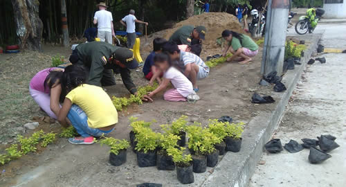 El Grupo de Prevención y Educación Ciudadana y el cuadrante 24 adscrito a la Estación de Policía Norte, integró a los habitantes del barrio Jardín Santander para mejorar las condiciones de la comunidad. Esta vez toda una comunidad se volcó para embellecer su zonas de esparcimiento mediante la siembre de Durantas en llantas reciclables en el sector Hato de la Virgen.En esta actividad participaron jóvenes y padres de familia que interesados por sus localidades, vieron en esta jornada la mejor forma de desplegar buenas acciones como ciudadanos. Además contó con el apoyo de la Cámara de Comercio, la cual donó las plantas y bancas beneficiando al sector, finalizando con un campeonato relámpago denominado "futbol en paz".Entre todos construimos comunidades pacíficas y solidarias.