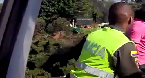 En estado de embriaguez, adujo que quería suicidarse porque tenía problemas sentimentales y económicos; nuestros compañeros de la Estación de Policía Villa Hermosa en un acto de heroísmo iniciaron un arriesgado rescate al internarse en la estructura que une al barrio La Asomadera con el barrio El Poblado. Con cautela empezaron a mediar con el hombre de 30 años de edad quien en repetidas ocasiones amenazó con lanzarse; tras tomar posiciones y entretenerlo lo sujetaron para sacarlo y evitar así un lamentable hecho. Con aplausos de vecinos y transeúntes fue trasladado a una clínica del sector donde recibió acompañamiento médico, mientras la labor de los policías fue reconocida y apoyada.