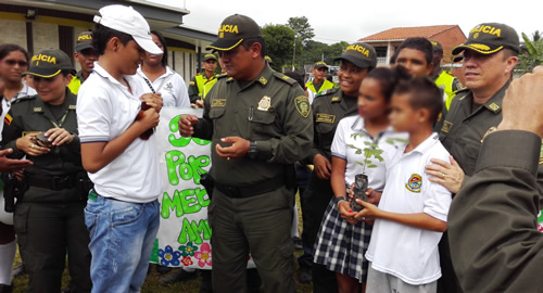 Conscientes de la responsabilidad que se debe tener con el cuidado y protección del medio ambiente, niños, niñas y adolescentes de los diferentes planteles educativos del municipio, se vincularon a la siembra de cientos de árboles en el marco de la campaña liderada por la Policía Nacional "Juntos por el Medio Ambiente".El evento inició con un acto protocolario donde los asistentes firmaron un acta simbólica, donde ratificaron su voluntad y compromiso con la conservación del medio ambiente. Más de 100 personas participaron en esta actividad, acto en el que también fueron entregados algunos animales como: ardillas y tortugas, pues en un noble gesto las familias que los tenían en condición de mascotas, tomaron la decisión de entregarlos a la Policía Ambiental y Ecológica para devolverlos en óptimas condiciones a su habita natural en coordinación con Coorpourabá.
