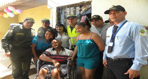 Mediante una campaña adelantada por la Policía Nacional y la red de aliados y la clínica Laura Daniela de la ciudad de Valledupar, se logró que una persona quien sufrió un accidente de tránsito hace 29 años tuviera su propia silla de rueda, la cual le permitirá realizar sus actividades cotidianas más llevaderas y así poder se desplazar con mayor facilidad.El hecho que tiene como referencia este gesto humanitario está reflejado en un hombre de 62 años de edad, quien tuvo un accidente de tránsito cuando se desplazaba en una motocicleta la cual le produjo una discapacidad que desde esa fecha lo mantuvo inmovilizado, cuando sus piernas resultaron afectadas debido al accidente.Por estos motivos se adelantó una campaña entre los integrantes de la red de aliados la institución y el personal de la clínica Laura Daniela, donde se adquirió una silla de rueda acompañados de un ventilador y un mercado. De estas forma ayudamos a cumplir los sueños de movilizarse en la silla de rueda, que además estuvo acompañado de elementos para su comodidad y alimentos, que la clínica como el personal de la red de aliados y la Policía Nacional han brinda a este hombre que tanto lo necesitaba.Seguiremos brindando este tipo de ayudas a las personas que más lo necesitan.La unión de la comunidad y la Policía Nacional es el mejor dúo para brindar a todos una mejor vida en paz.