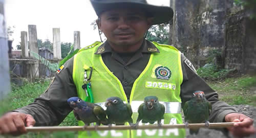 En el marco de la campaña "Vive esta Semana Santa en Armonía con la Naturaleza" nuestras unidades personal del grupo de protección ambiental y ecológica de la Policía Nacional, en el barrio zona minera del municipio de Quibdó, gracias a la información de ciudadano pudo evitar la muerte de cuatro especies de aves Lora Cheja "cotorra cabeciazul" nombre científico (pionus menstruus), las cuales tienen un valor ecológico estimado de $ 4`826.178.Las aves se encontraban en un árbol luego de ser derribado por una retroexcavadora iban a ser lanzadas al río al parecer por el conductor del vehículo. Sin embargo, el oportuno aviso de la comunidad y la intervención del grupo ambiental permitió la conservación y preservación de estas especies fáunicas. Las unidades de la Policía Nacional realizaron la respectiva incautación preventiva de estas especies, dejándolas posteriormente a disposición de Codechocó.Con la ayuda de la comunidad seguiremos encaminados en la defensa de nuestra flora y fauna de nuestro país.