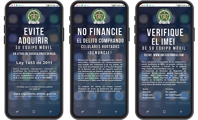 Denunciar, segunda fase, que trata de incentivar a la población la denuncia y verificar la autenticidad de los lugares en donde se adquieran y reparen equipos celulares.
