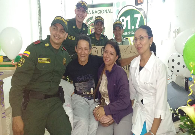 Es de esta manera y después de varios días de búsqueda y gestión por parte de este miembro de la Policía Nacional se logró dar el feliz reencuentro entre Jorge Mejía una víctima de una mina antipersonal, con su familia que hacía más de 15 años no sabía de ella, quedando en el corazón de este héroe de la Policía la satisfacción del deber cumplido.