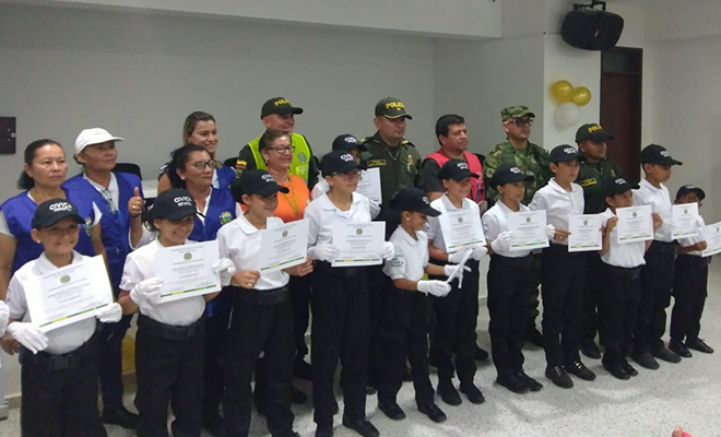 En dos actos de clausura académica, llevados a cabo en los municipios de San Juan de Arama y San Martín, el Departamento de Policía Meta, graduó a 42 niños, niñas y adolescentes que ingresaron al programa “Cívica Infantil y Juvenil”, desde donde, bajo el liderazgo del grupo de Prevención y Educación Ciudadana, apoyarán las actividades para la formación sobre valores y principios, especialmente durante esta época de navidad y vacaciones, que se busca generar espacios sanos para la adecuada ocupación del tiempo libre y prevenir la vinculación de los jóvenes en cadenas delictivas y situaciones de riesgo como el consumo de sustancias estupefacientes.