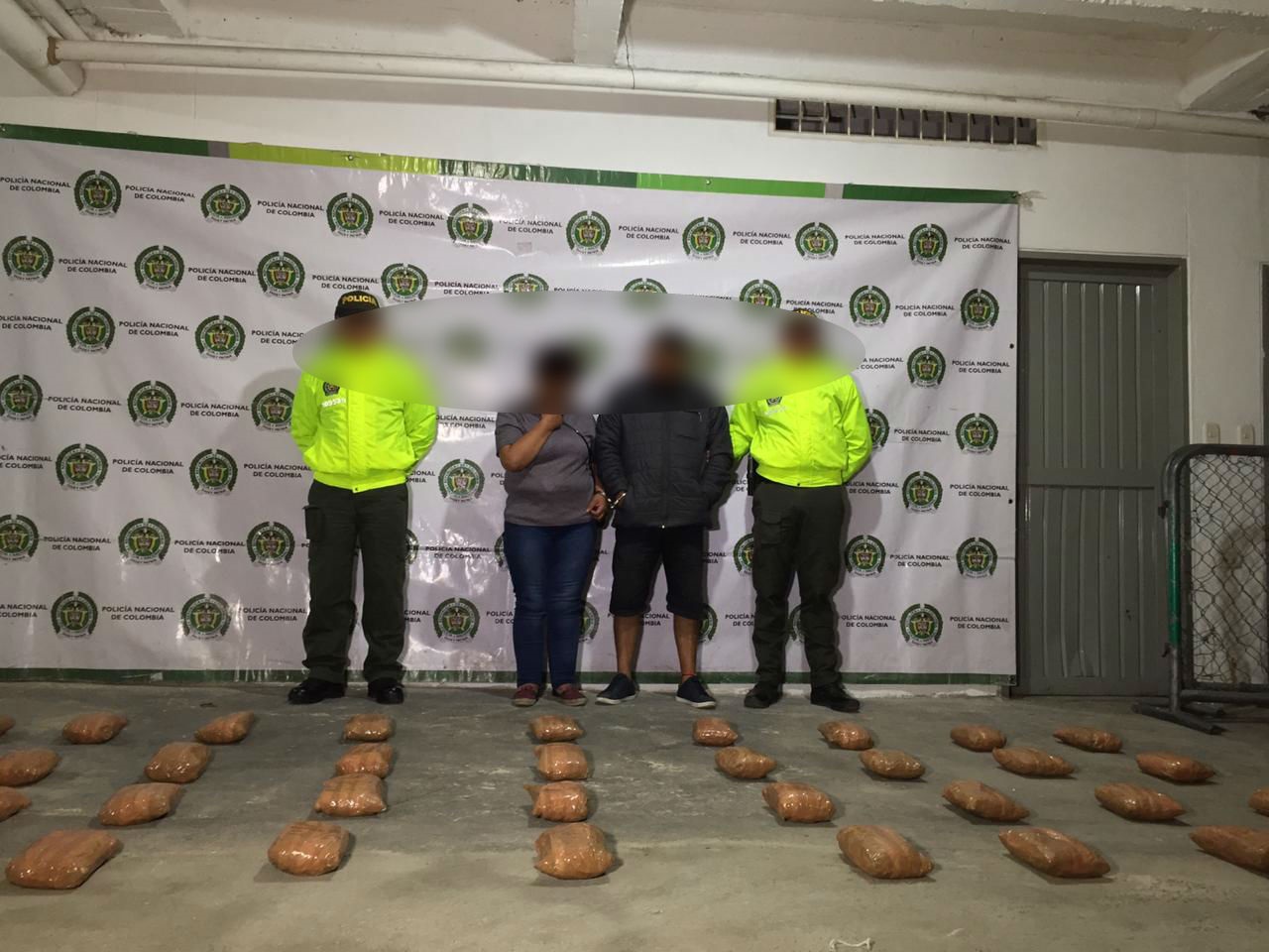 la Policía Metropolitana de San Juan de Pasto, logra la captura de dos personas las cuales transportaban en su vehículo 35 kilos de base de coca que iban a ser dosificados y comercializados en la ciudad de Pasto.