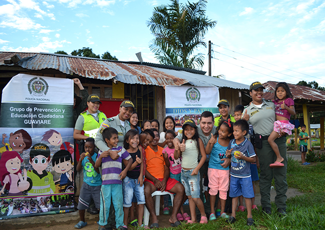 La Policía Nacional a través del Grupo de prevención y educación Ciudadana y la seccional de servicios especiales, se trasladaron hasta la comunidad indígena del refugio, la cual está ubicada a 36 kilómetros de la capital del Guaviare, allí lego la Policía Nacional con el fin de llevar un día de alegría esparcimiento y recreación a los niños, niñas, jóvenes y adultos, en ésta apartada zona del sector rural en Guaviare