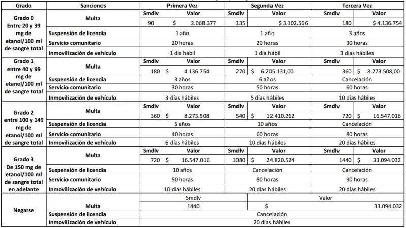Po su parte la Seccional de Tránsito y  Transporte de Bogotá, exhorta a los conductores y a sus familiares a adoptar comportamientos responsables, en los que incluso no se dé lugar a la tentación llevando bebidas embriagantes a bordo de los automotores, teniendo en cuenta las consecuencias penales que implica el hecho de verse involucrado en un accidente con heridos o muertos, además el costo económico por conducir en estado de embriaguez, el cual puede llegar a superar los 33 millones de pesos.