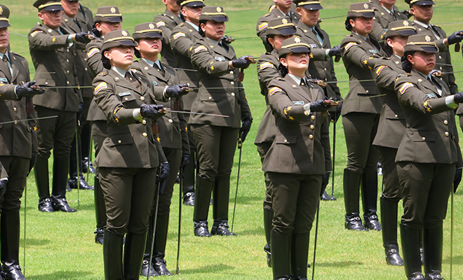 Como momento central del protocolo, los cadetes recibieron el sable de Policía, símbolo del liderazgo, la rectitud, la justicia y el uso legítimo de la fuerza en el cumplimiento del deber, tradición que la Escuela mantiene desde hace 85 años en la formación de oficiales guiados por el honor y la vocación de servicio.