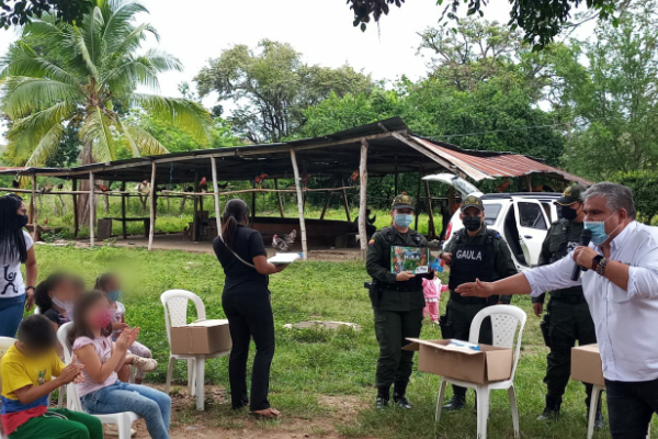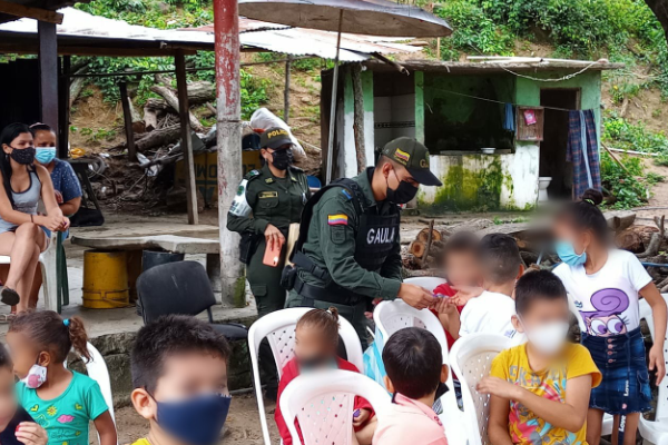En cabeza del grupo Gaula, infancia y adolescencia y en coordinación con la secretaria del medio ambiente del municipio de Neiva, llegamos hasta el asentamiento San Bernardo de la comuna 10 de esta ciudad, con el fin de dar a conocer la modalidad de extorsión y demás delitos que afectan a los niños, niñas y adolescentes.