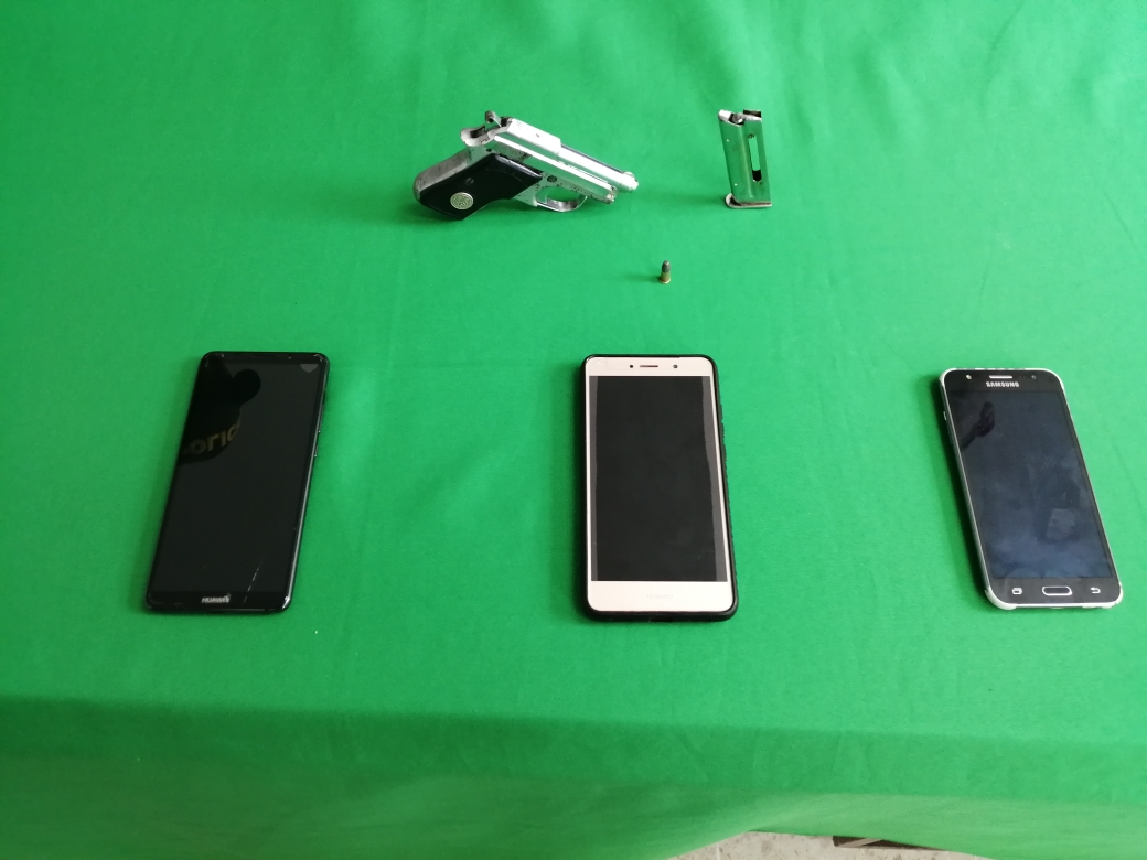Los uniformados de inmediato procedieron a realizar el plan candado y búsqueda del sospechoso, quienes interceptaron al automotor en el que se movilizaba el presunto asaltante siendo capturado en ese momento, hallándosele en su poder un arma de fuego tipo pistola con cartuchos, así mismo se logró la recuperación de tres equipos móviles celulares producto del hecho delictivo cometido.
