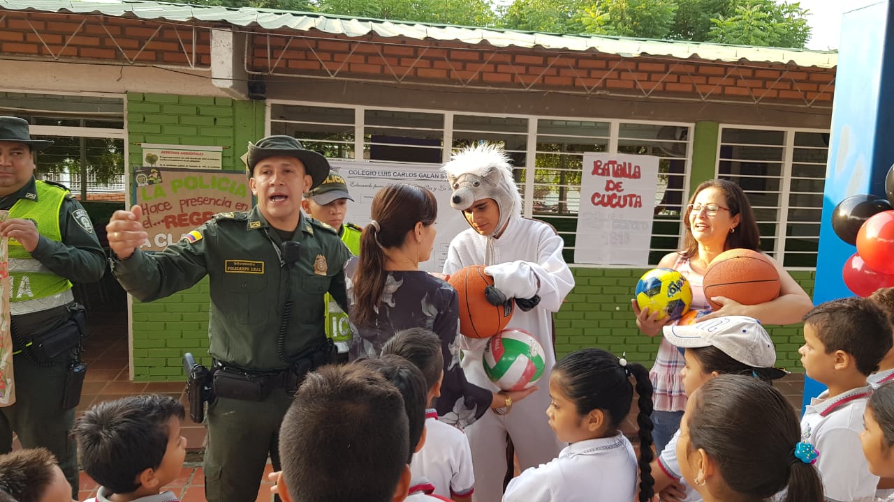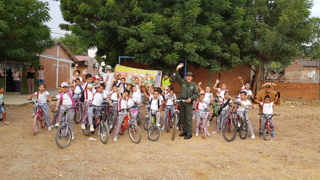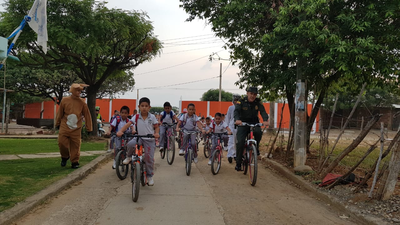 La Policía Nacional a través del Grupo Ambiental y Ecológica de la Metropolitana de Cúcuta, llegaron hasta la sede de la institución educativa Luis Carlos Galán Sarmiento del barrio El Pórtico de Cúcuta con la campaña "Retorno a clase, pedaleando por un ambiente sano".