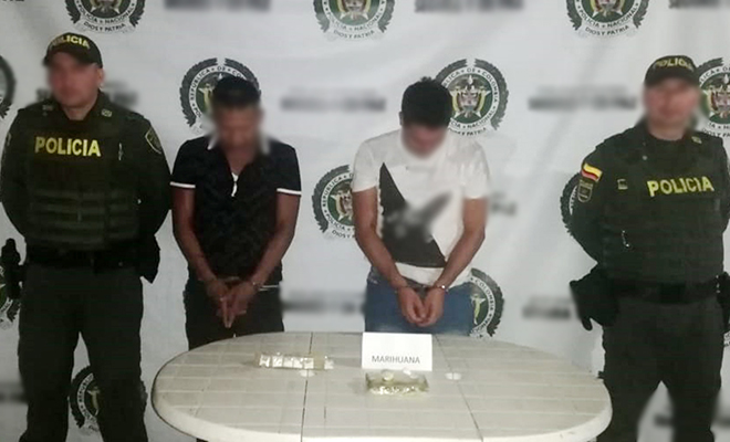 En desarrollo del Plan de Choque “Construyendo Seguridad”, el Departamento de Policía Meta logró la captura de dos hombres de 31 y 37 años de edad, a quienes unidades de Vigilancia Comunitaria por Cuadrantes, les hallaron en su poder 300 gramos de marihuana y cinco de clorhidrato de cocaína, que pretendían comercializar de manera clandestina en el casco urbano de San Martín. Sacando más de 300 dosis personales del alcance de la comunidad, especialmente de nuestros jóvenes.