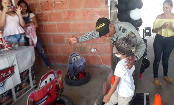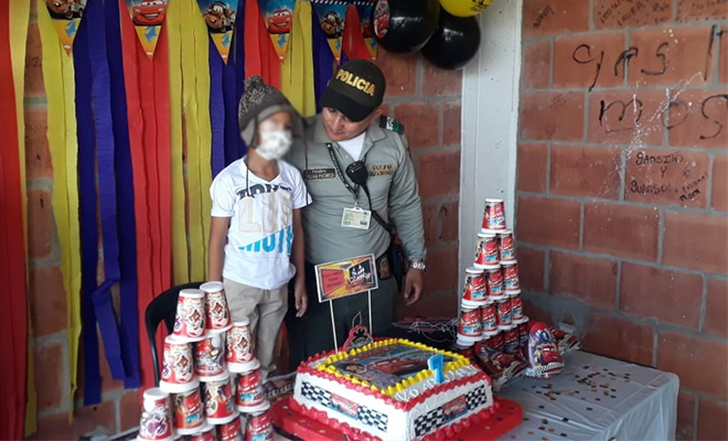 La celebración sorpresa se realizó en la caseta comunal de la ciudadela La Sabana, en donde Jeyson, era esperado por sus familiares, amiguitos y uniformados, para compartir un día especial. El evento fue liderado por la Policía Nacional de todos los colombianos gracias a la colaboración de los comerciantes que suministraron la torta, bebidas y la decoración del lugar. De igual forma, se realizó la presentación de un show de payasos, baile llanero, piñata y actos recreativos.