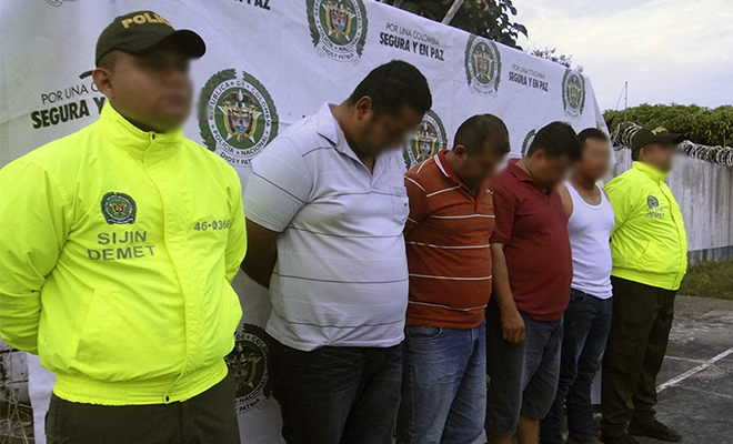 Entre los implicados se encuentra un sujeto conocido en el mundo del delito como ‘mono’, señalado de ser el cabecilla de esta banda, y sus colaboradores ‘grande’, ‘Milton’, ‘Rodulfo’ y ‘Camilo’ encargados de tramitar guías sanitarias de movilización con información falsa y de los hurtos en horas de la madrugada e implementando armas de fuego. Estos individuos eran solicitados por el Juzgado segundo penal municipal con función de control de Garantías de San Martín, por los delitos de hurto agravado, hurto calificado y agravado, alteración desfiguración y suplantación de marcas de ganado uso de documento falso, fabricación, tráfico porte o tenencia de armas de fuego y concierto para delinquir.