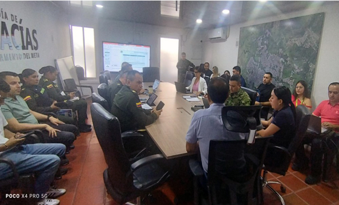 Acacías – Meta. En la sala de juntas de la Alcaldía del municipio de Acacías, el 6 de febrero, se desarrolló una mesa de trabajo interinstitucional con la participación de autoridades político-administrativas, la Policía Nacional y las Fuerzas Militares, en la cual se abordaron asuntos estratégicos en materia de seguridad y convivencia ciudadana, relacionados con la planeación, aprobación, seguimiento y evaluación de los Planes Integrales de Seguridad y Convivencia Ciudadana (PISCC).