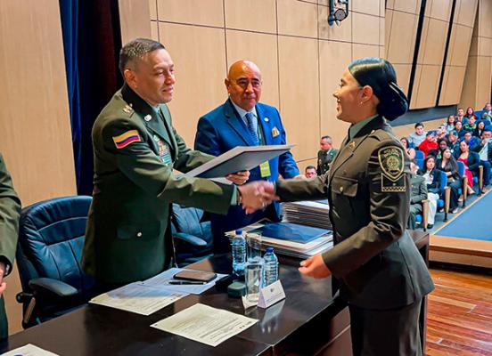 El señor Brigadier General Herbert Luguiy Benavidez Valderrama, quien presidió la ceremonia, destacó el compromiso, la disciplina y la dedicación de los nuevos peritos, subrayando que su formación contribuye a la eficiencia, la transparencia y la responsabilidad en los procesos administrativos que adelanta la Jefatura.