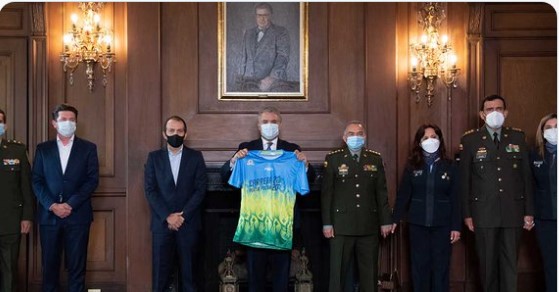 El Presidente Iván Duque Márquez recibió este martes la camiseta oficial de la Carrera Virtual 10K de la Policía Nacional, que esta vez se realizará de forma digital entre el 15 y 30 de noviembre próximo, debido a las medidas para enfrentar la pandemia.