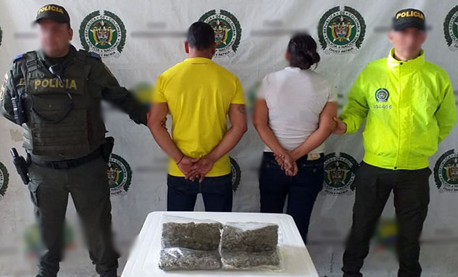 El caso que se registró sobre el kilómetro 7+600 metros, en la vía que del municipio de Granada conduce hacia Villavicencio, en coordinación con las capacidades del Modelo Nacional de Vigilancia Comunitaria por Cuadrantes, dejó la captura de un hombre y una mujer de edades 37 y 31 años respectivamente, los cuales fueron sorprendidos con una bolsa plástica que, contenida dos bloques de marihuana, momentos en que viajaban en un vehículo de servicio público como pasajeros.