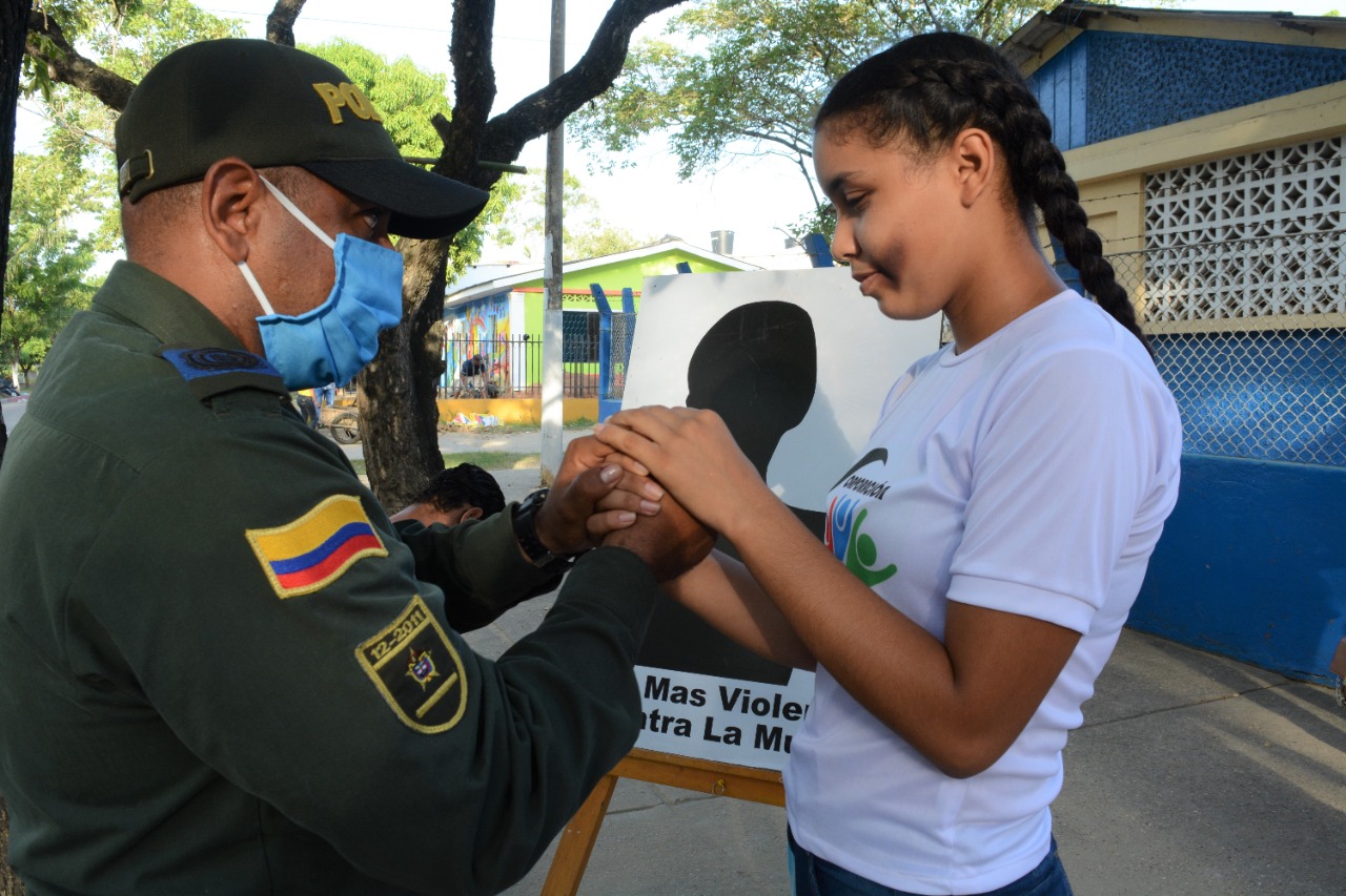 De la misma manera el Área de Prevención y Educación Ciudadana de la Policía de Bolívar acantonada en esta población hizo un acompañamiento mediante charlas y, además, varias mujeres con maquillaje simularon golpes y su rostro entristecido, con el fin de crear conciencia sobre este flagelo que azota a las mujeres colombianas.